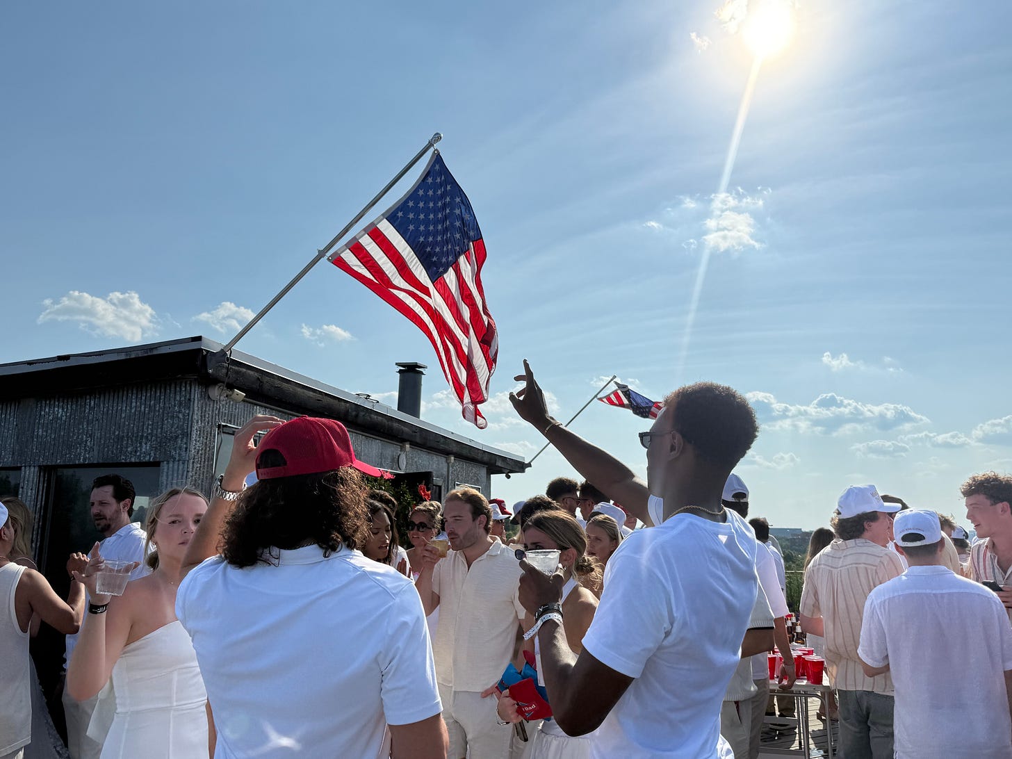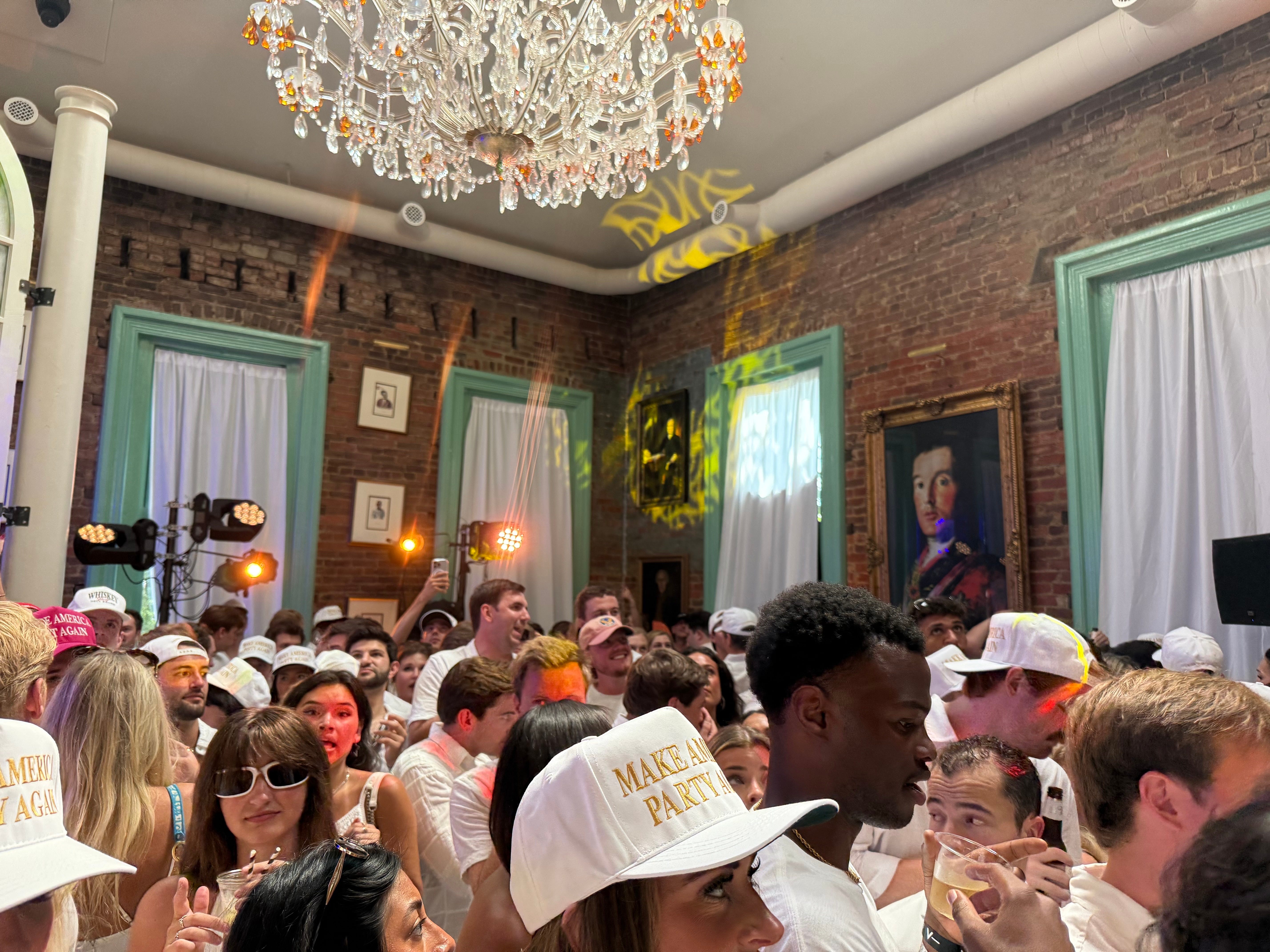 I traveled to Washington to “celebrate the first MAGA summer in four years,” on July 5th. The dress code was “all white,” mocking Colyar’s observation that most of the patrons at the inauguration-celebration party were white. I dressed accordingly, donned American flag sunglasses, and wore the bold-typeface, Trumpian “Make America Party Again” hat I was handed at the entrance.