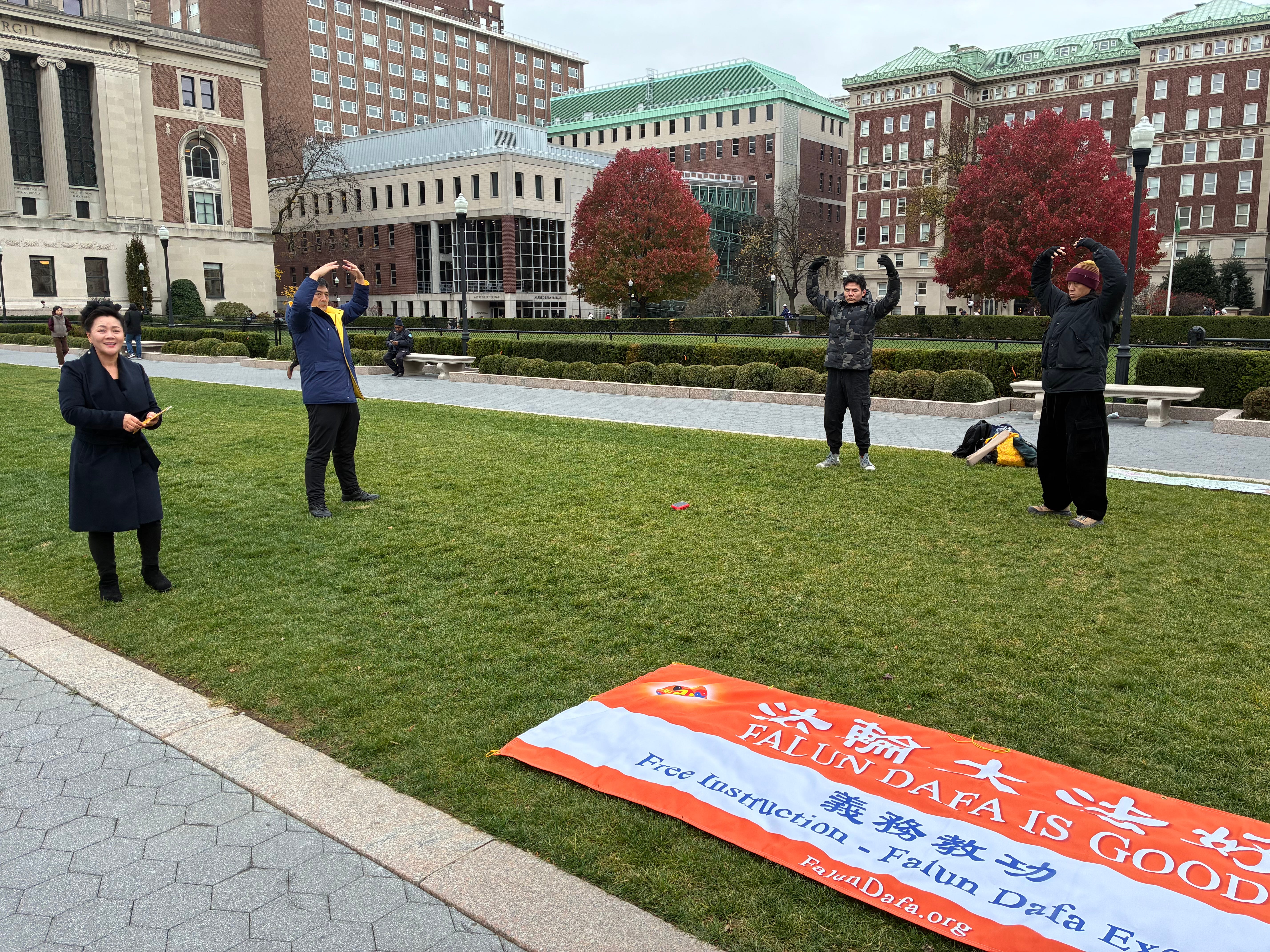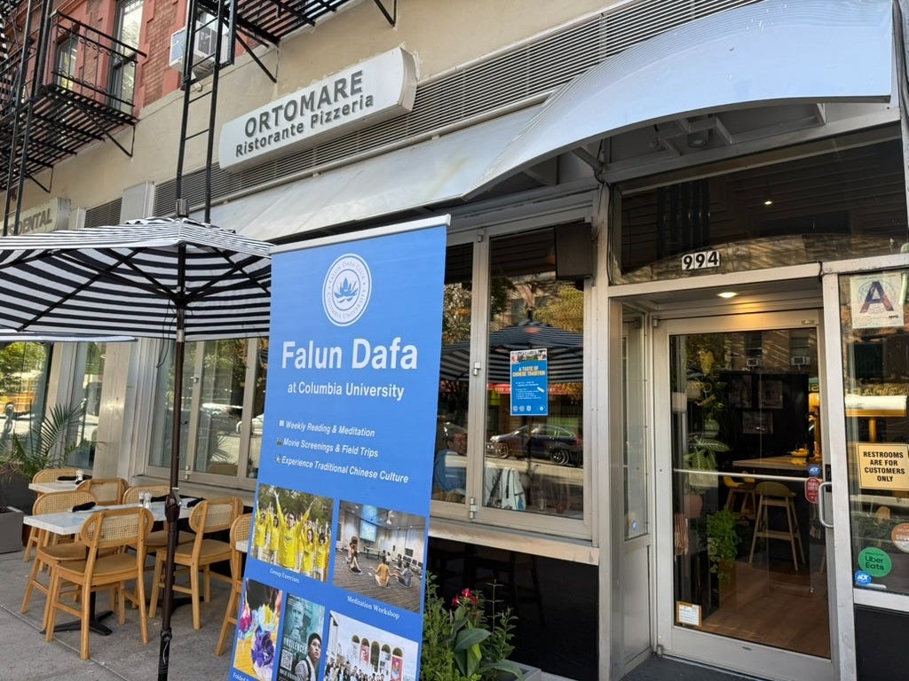 On the afternoon of October 24, I walked to the Italian restaurant where the Falun Gong meditation was being held. It was eerily quiet outside the restaurant, missing the buzz that would typically be expected of a lively cultural event. Confused, I looked around, suspecting I had arrived at the wrong address, until I spotted a large banner with the words “Falun Dafa at Columbia University.” As I surveyed my surroundings, the club’s chairman, a master’s student at Columbia, suddenly appeared, welcoming me inside vigorously.