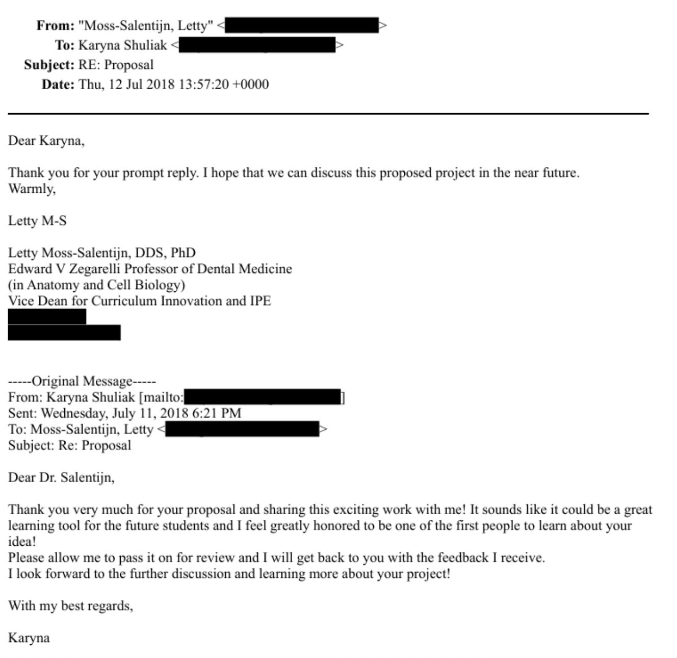Epstein forwarded this email to Shuliak, who then consulted with Moss-Salentijn on the project proposal in July of 2018, only one year before Epstein’s final conviction and death.